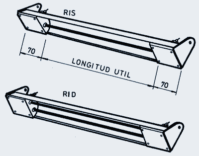 Pantallas infrarrojas reforzadas Construídas con chapa de acero terminadas con pintura de alta temperatura y reflector de acero inoxidable. Los bornes de la resistencia quedan dentro de la estructura de chapa. Se proveen con un solo elemento calefactor (RIS).