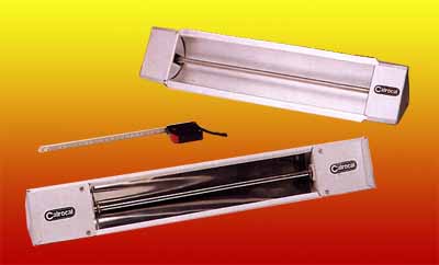 PANTALLAS DE RADIACIÓN INFRARROJA Estos radiadores infrarrojos están construídos en chapa de duroaluminio o acero inoxidable pulido, con 1 o 2 tubos radiantes de acero inoxidable 304, cuya temperatura alcanza los 800º C. Se utilizan en todo proceso que requiera calentamiento por radiación, para ambientes, secado de pintura, hornos, moldeado de plástico, etc. Pantallas