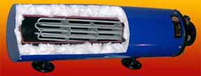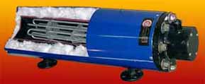 PRECALENTADORES INDUSTRIALES Los precalentadores CALROCAL están proyectados para calentar grandes cantidades de fluído (agua, aceite, petróleo, etc). Están construídos con un tubo de acero y un conjunto de resistencias montadas sobre una brida normalizada. El equipo es sometido a exigentes pruebas hidráulicas, para asegurar su total estanqueidad; está térmicamente aislado con una camisa de lana mineral y puede proveerse con un control automático de temperatura. El líquido circula por el cuerpo del calentador en contacto directo con las resistencias produciendo una rápida transferencia de calor. Cuenta con bafles de chapa que tienen como objeto dar un sentido a la circulación y aumentar el tiempo de permanencia del fluído dentro del calefactor. Para calentar combustibles y aceites, las resistencias están blindadas en acero; para agua u otros líquidos, los calefactores blindados son de cobre o acero inoxidable; el interior del tubo puede proveerse galvanizado.
